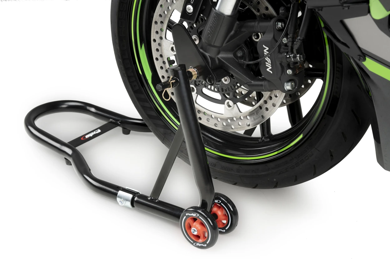 - La béquille avant pour moto de Puig est l’accessoire idéal pour des stationnements de longues durées et pour ceux qui parcourent fréquemment les circuits.
