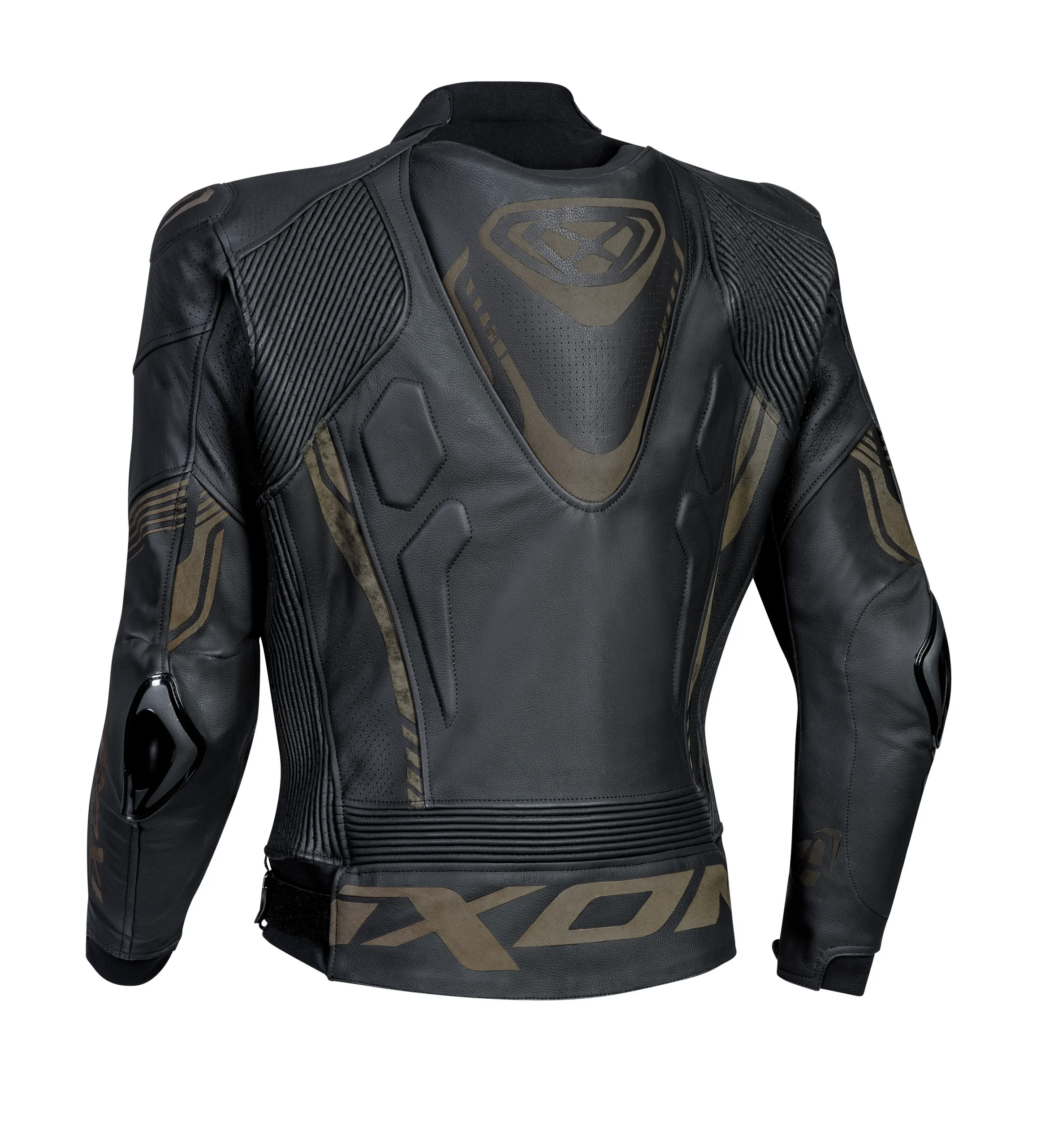 - Soufflets d’aisance en cuir flex accordéon à l’arrière des épaules, sur les côtés, sur le dessus des coudes ainsi qu’aux emmanchures et en bas du dos, augmentant la mobilité et la flexibilité lors de la conduite.