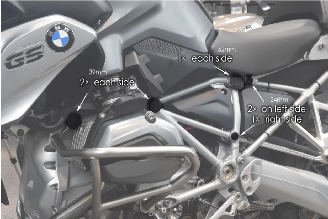 - Bouchons pour recouvrir les zones creuses du châssis et embellir votre moto.