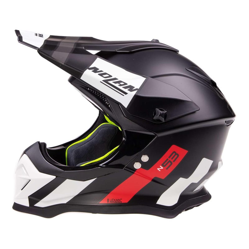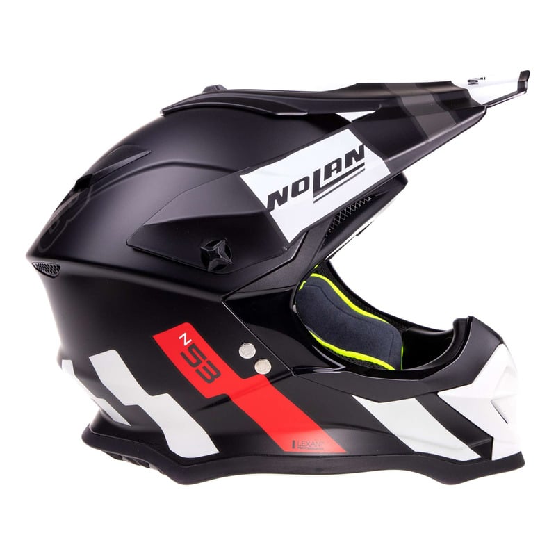 C’est le casque tout-terrain intégral de Nolan. Il se caractérise par un design agressif, un bon équipement technique et une large gamme de couleurs et de graphismes. Le faible volume (grâce à la disponibilité de deux tailles de coque extérieure), le hublot particulièrement large, le système de ventilation supérieure AirBooster Technology et le rembourrage de confort interne Clima Comfort (conçu en tenant compte de l’utilisation intensive du produit) font du N53 un produit intéressant pour les passionné de route.