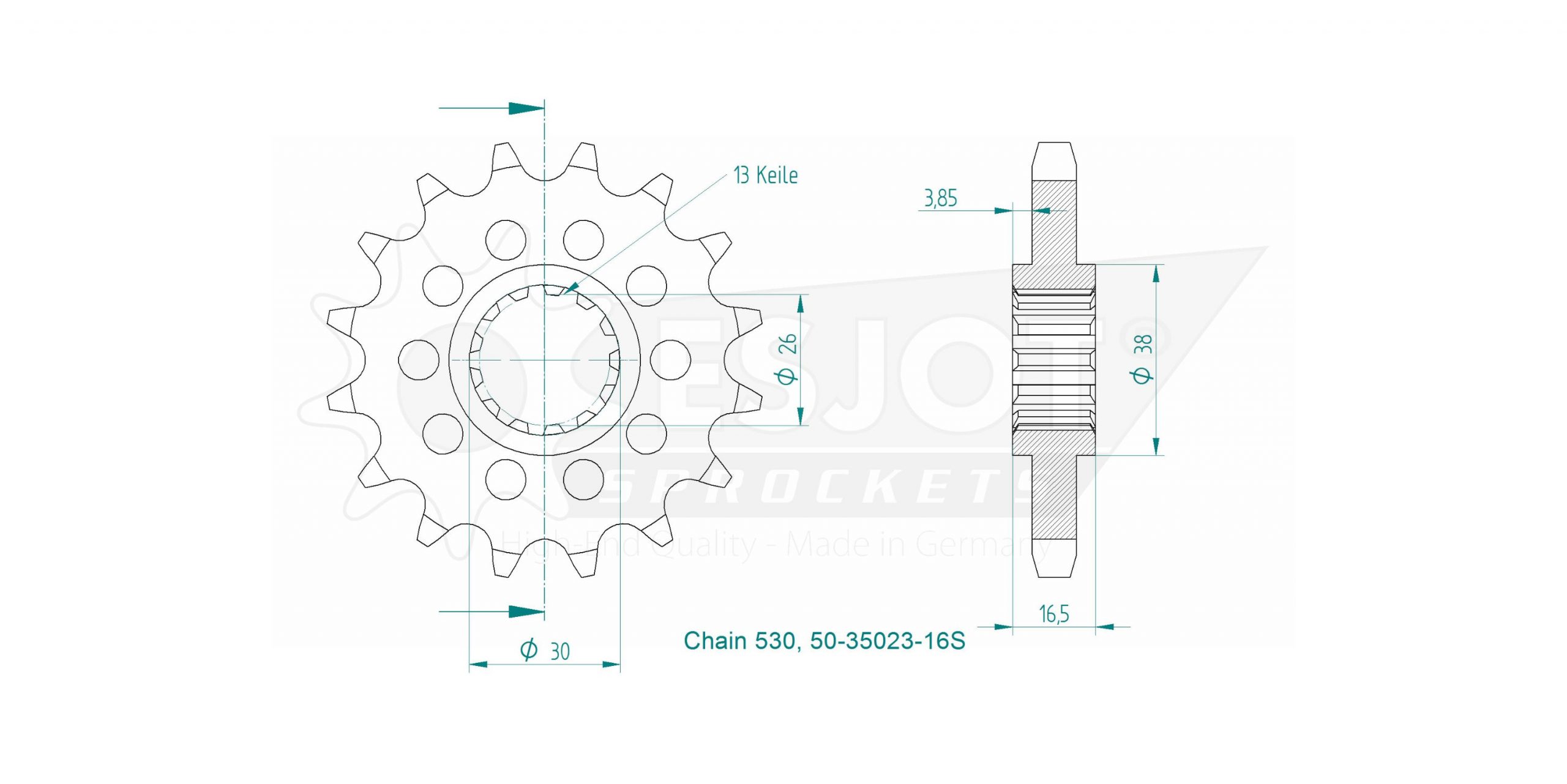 ESJOT Antriebstechnik GmbH est une marque allemande spécialisée dans la fabrication de pignons, couronnes et chaînes de transmission pour motos, scooters et quads. Forte de plus de 90 ans d’expérience, ESJOT s’est imposée comme un partenaire incontournable des constructeurs et des professionnels de la rechange, en combinant qualité industrielle, innovation et performance.