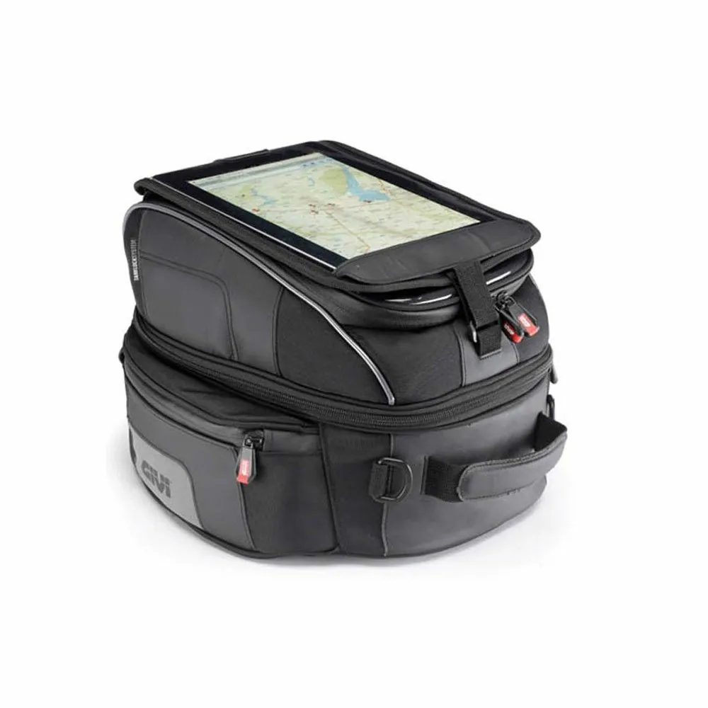 - Système Tanklock : permet à la sacoche d’être fixée sur la base d’accrochage universelle Givi S430, en option, sur la selle à la place du passager.