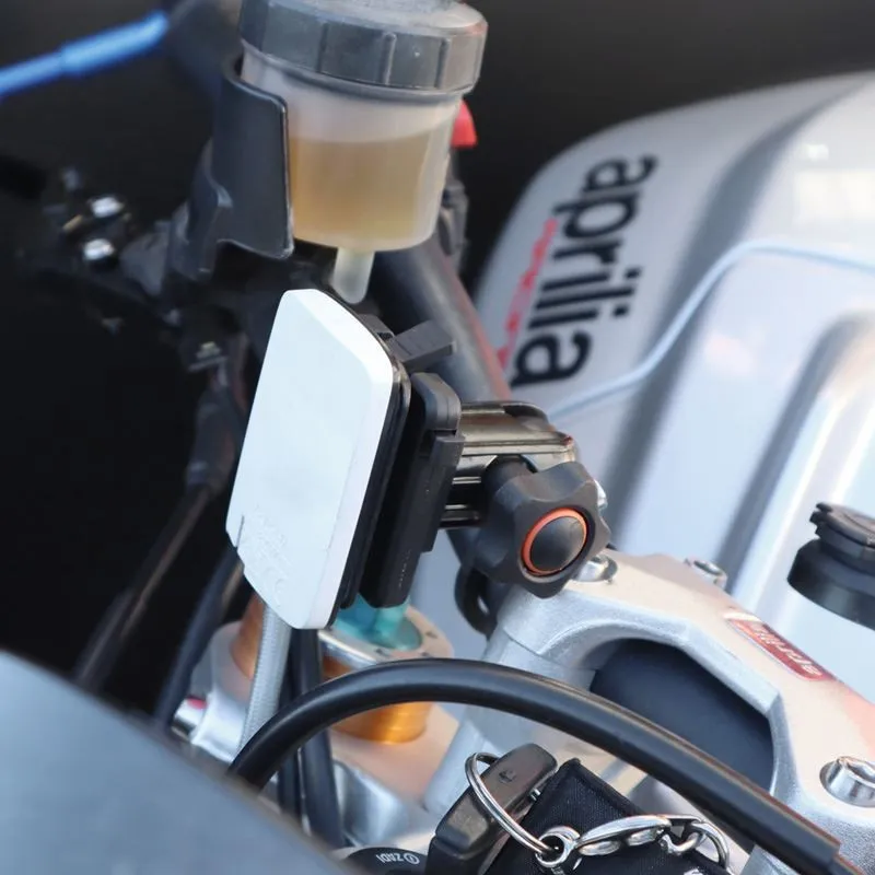 - Un adaptateur universel équipé d’une clé de verrouillage vient se clipser sur le support autocollant.
