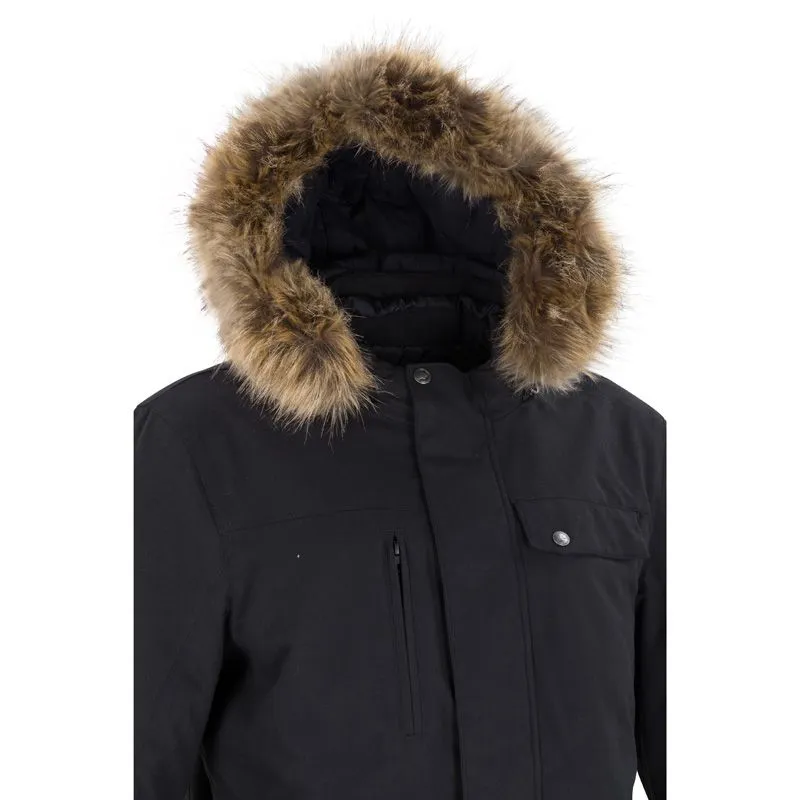 - Capuche amovible munie d’une fourrure synthétique amovible.